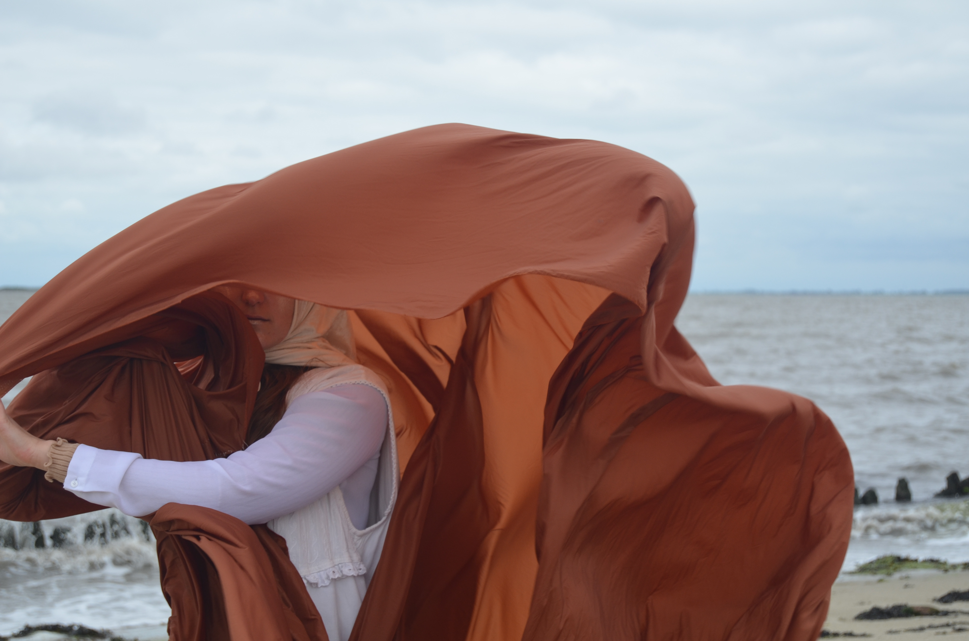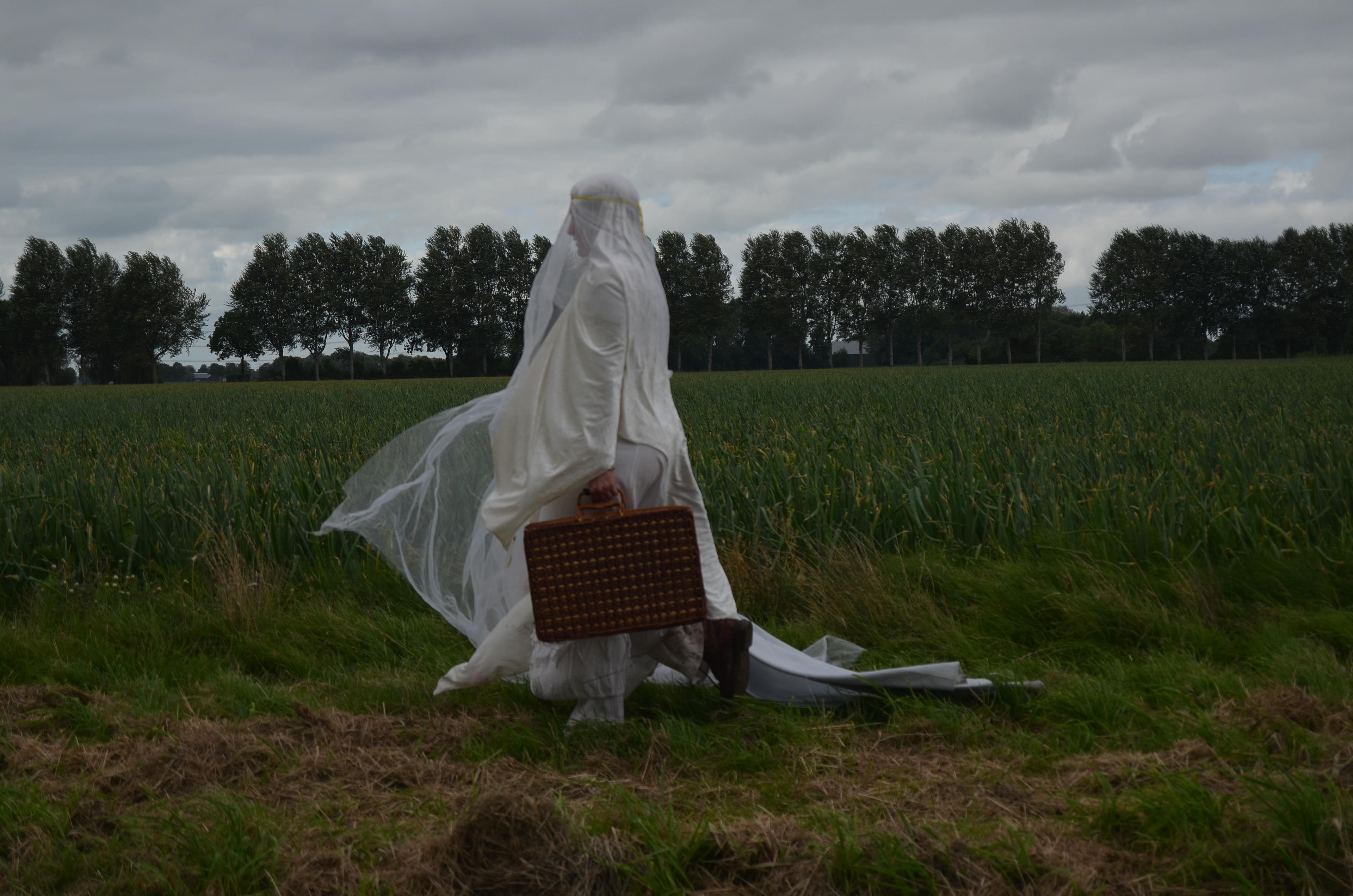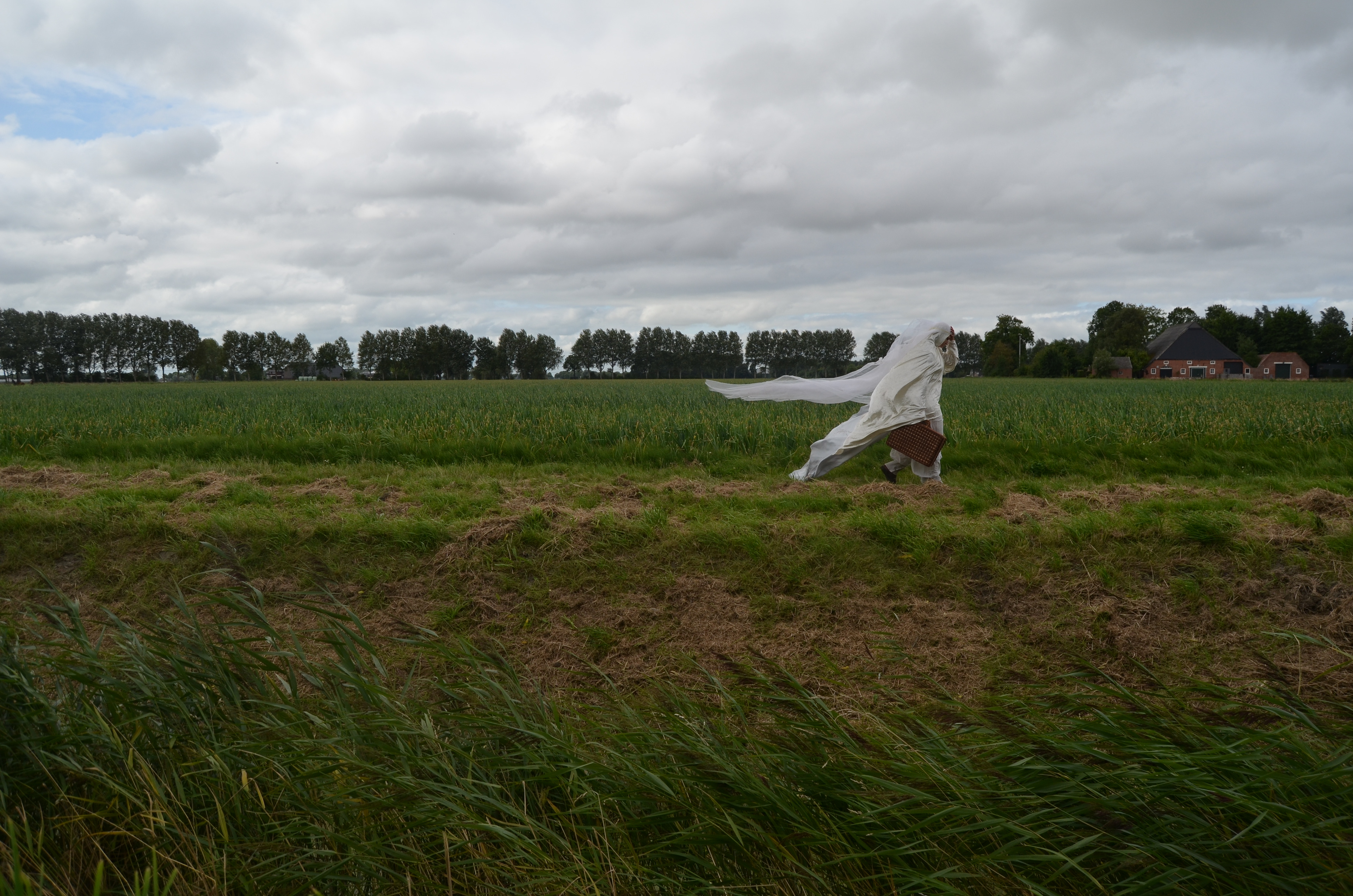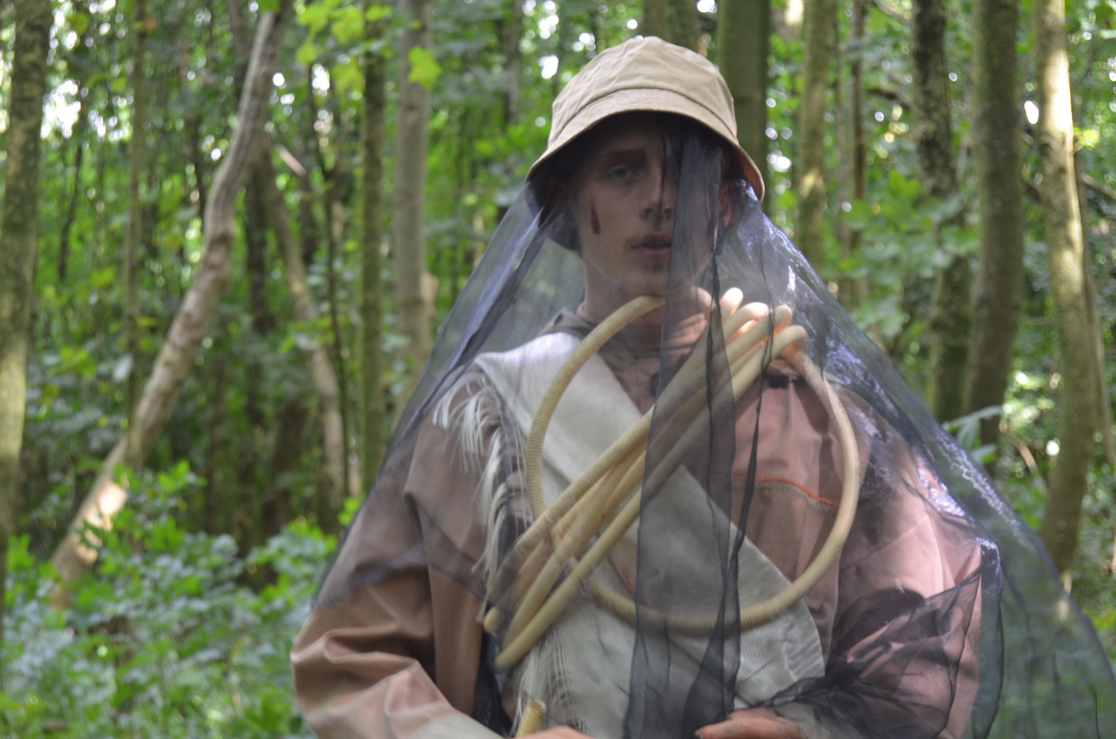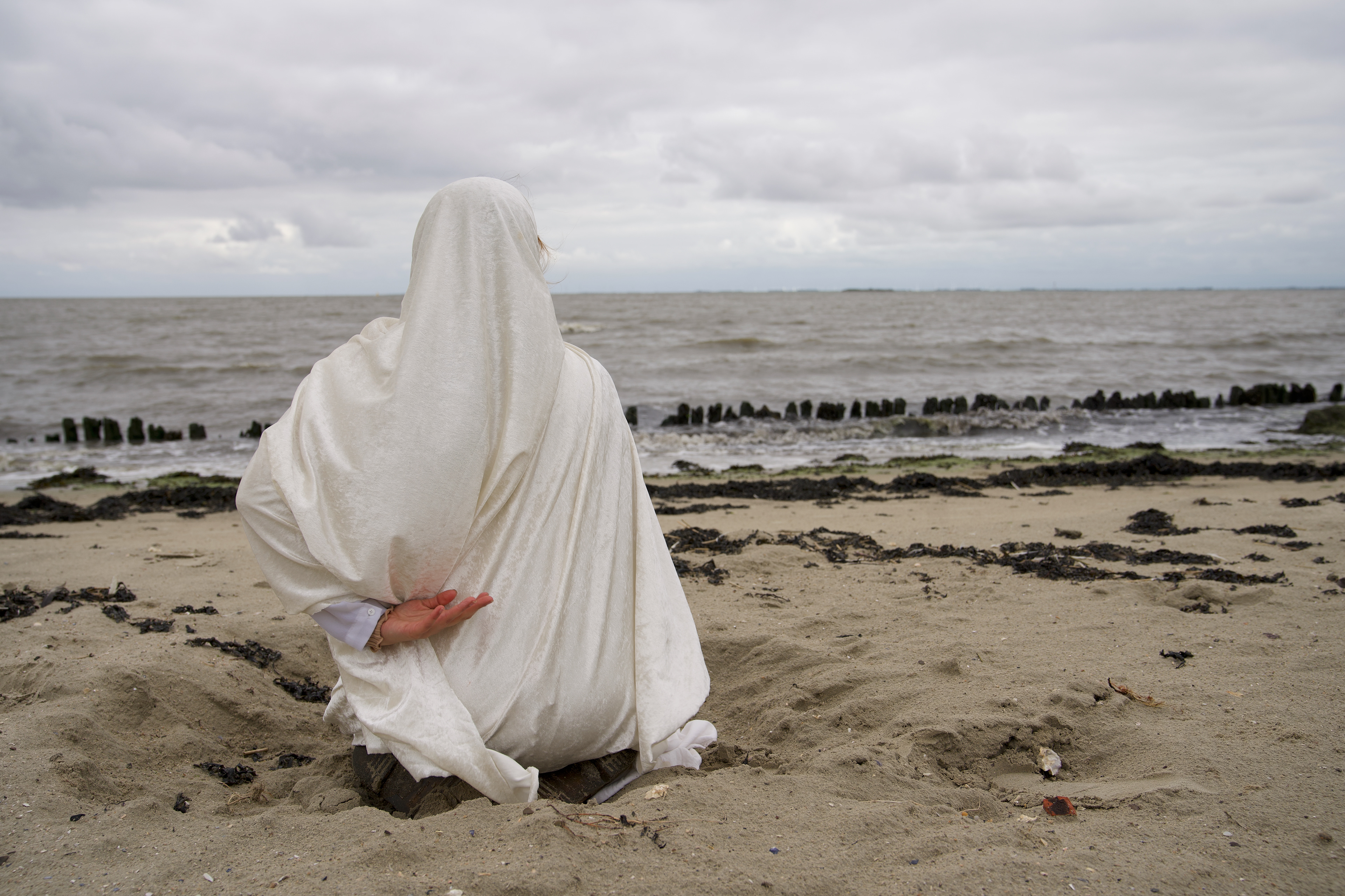 Mystical Re-enchantments is an element-responsive performative installation that unfolds as a ceremonial procession journey from forest to sea. Together with Michiel Teeuw, Bierumer School, 2020. Eeems Delta, Bierum.
